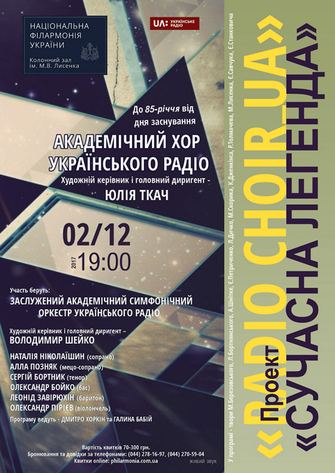 Подія відбудеться 2 грудня 2017 року о 19:00 в Колонній залі ім. М. Лисенка Національної філармонії України. За участю провідних вітчизняних музичних колективів глядачі та слухачі почують твори українських композиторів Л. Дичко, Є. Петриченка, М. Скорика. Також на сцені звучатимуть вокально-симфонічні твори М. Лисенка, Є. Станковича. Хор та оркестр Українського радіо виконають К. Дженкінса, Р. Толмачева та оригінальний твір Є. Савчука. Слухачів чекає великий сюрприз – твір нашого дитинства!